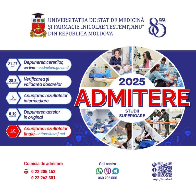 Universitatea de Stat de Medicină și Farmacie „Nicolae Testemițanu” din Republica Moldova a făcut publice astăzi, 12 august, rezultatele finale ale concursului de admitere la studii superioare de licență și integrate, și cele ale concursului la studii superioare de master pentru anul universitar 2025-2026, conform programelor de studii, categoriilor de concurs și sursei de finanțare.